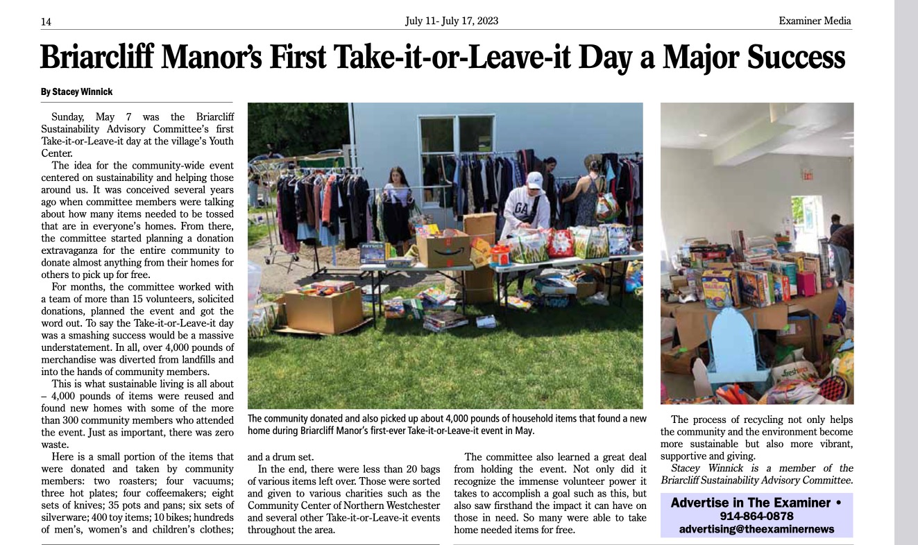 Briarcliff Take it or Leave it-The Examiner article